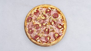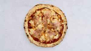 szynka prosciutto cotto, ananas, mozzarella fior di latte, sos pomidorowy, oregano