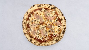 szynka prosciutto cotto, pieczarki, mozzarella fior di latte, sos pomidorowy, oregano