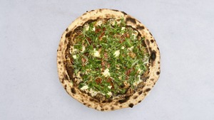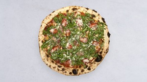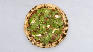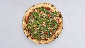 pasta truflowa, salami piccante, rukola, mascarpone, mozzarella fior di latte, sos pomidorowy oregano