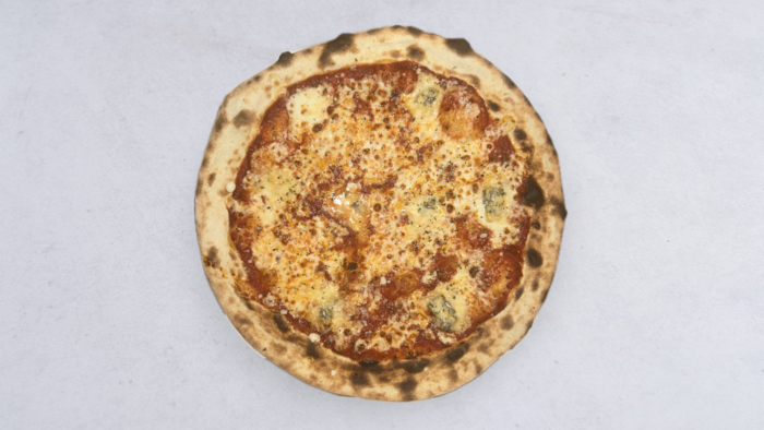 ser gorgonzola, parmezan, cheddar, mozzarella fior di latte, sos pomidorowy, oregano